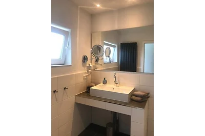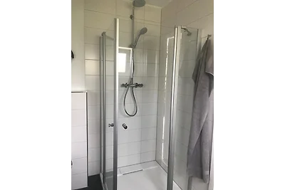 Moderne Ferienwohnung direkt am Deich (100 m zum Hauptbadestrand). Ein Schlafzimmer mit Doppelbett in Komforthöhe (je 90 x 200 cm).