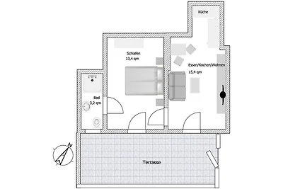 Deich-Wohnung "Dachterrasse" | vom DTV klassifiziert Die 3-Zimmer-Wohnung (55 qm) in der ersten Etage mit 16 qm Dachterrasse erlaubt sogar einen kleinen Blick über den Deich auf d...
