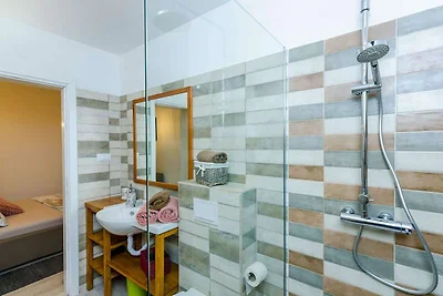 In der 1. Etage: (Küche(Kochplatte, Kochherd, Mikrowelle), Schlafzimmer(Französisches Bett), Badezimmer) common kitchen, Toilette, Dusche, Parkplatz