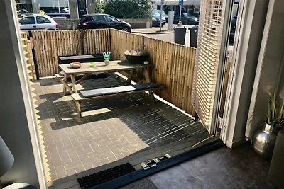 Geniessen in einem gemütlich, ganz neu, eingerichtete Appartment bis 6 Personen mit Meerblick! Strand 50M entfernt, Dünen 100M und Zentrum 300M. Parkplatz, Wlan, Fahrradabstellraum