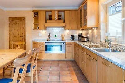 In der 1. Etage: (offene Küche(Esstisch, Wasserkocher, Toaster, Kochherd(2 Kochplatten, Ceranfeld), Kaffeemaschine, Mikrowelle, Spülmaschine, Kühlschrank)