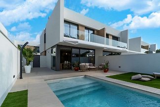 Doppelhaushälfte mit Pool und Garten. Das Haus hat 3 Schlafzimmer 2 Badezimmer und 1 Gäste WC . Wohnzimmer und Kaminzimmer. Außerdem hat es 2 Terassen und 1 Dachterasse