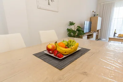 , Wohnzimmer(TV, Esstisch, Sitzecke), offene Küche(Wasserkocher, Toaster, Kaffeemaschine, Backofen, Mikrowelle, Spülmaschine, Kühlschrank, Tiefkühlschrank, )