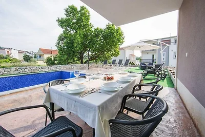 Villa CroAdria: 5 SZ, 5 BZ, 12 Schlafplätze. Bietet ein 42m² beheiztes Schwimmbecken, 50m² offenen Wohnbereich, Grillplatz und Sportplatz. Zu Fuß zum Strand, Geschäften, Restaurants. Nahe Split, Omiš und Fluss Cetina.